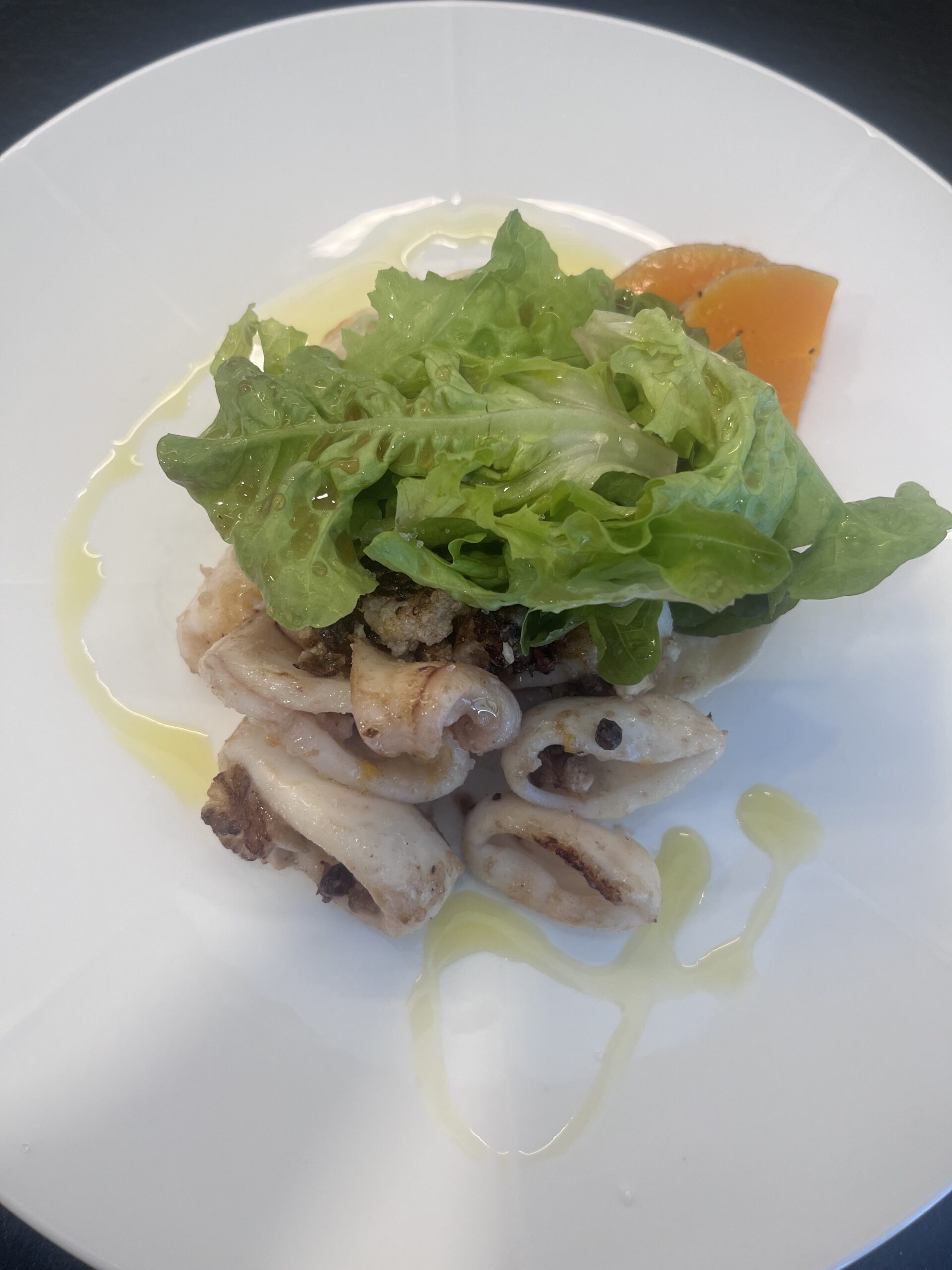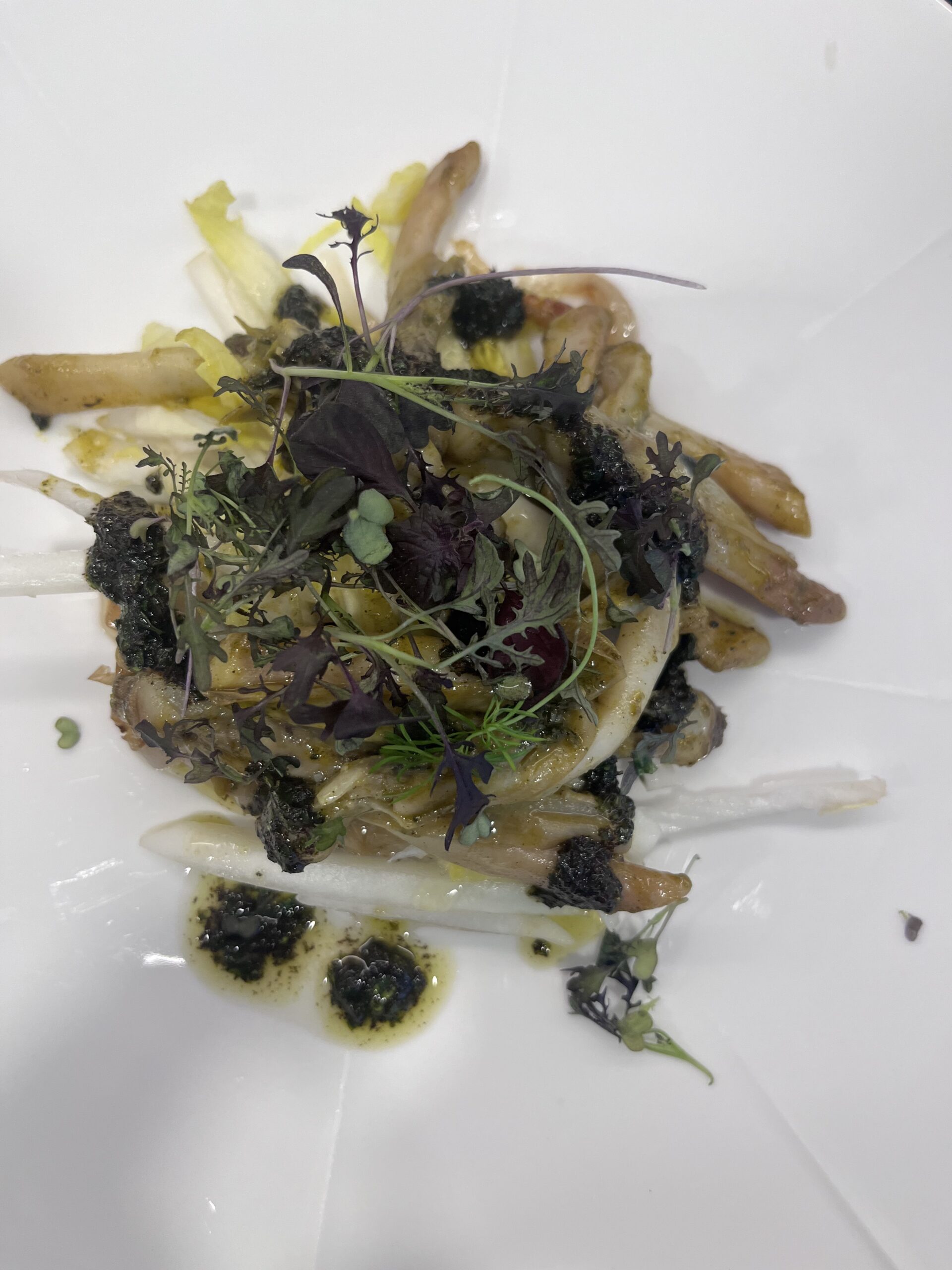 - Salade de couteau, persil, endive à l’orange et creme d’ail noir